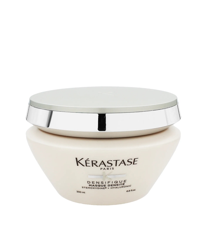 Regenerująca maska wzmacniająca do włosów przerzedzających się Kérastase Densifique Masque Densité została opracowana specjalnie z myślą o włosach pozbawionych gęstości. Ta odżywcza kuracja zawiera kombinację składników aktywnych, które nawilżają i wzmacniają włókno włosa, nadając włosom naturalną objętość. Wyrównuje również nierówności na powierzchni włókna włosa i przywraca jednolitość u nasady. Efekty te nadają włosom teksturę, pełnię i zdrowe wzmocnienie. Włosy są zregenerowane od nasady aż po końce, aksamitnie gładkie i lekkie w dotyku. Włosy wyglądają na pełniejsze i grubsze.